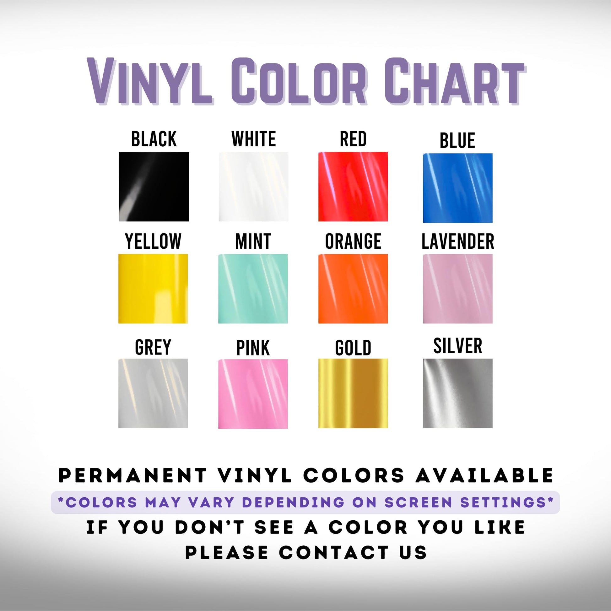 - 12 Vinyl Colors Available – Choose from Black, White, Red, Blue, Yellow, Mint, Orange, Lavender, Grey, Pink, Gold, or Silver